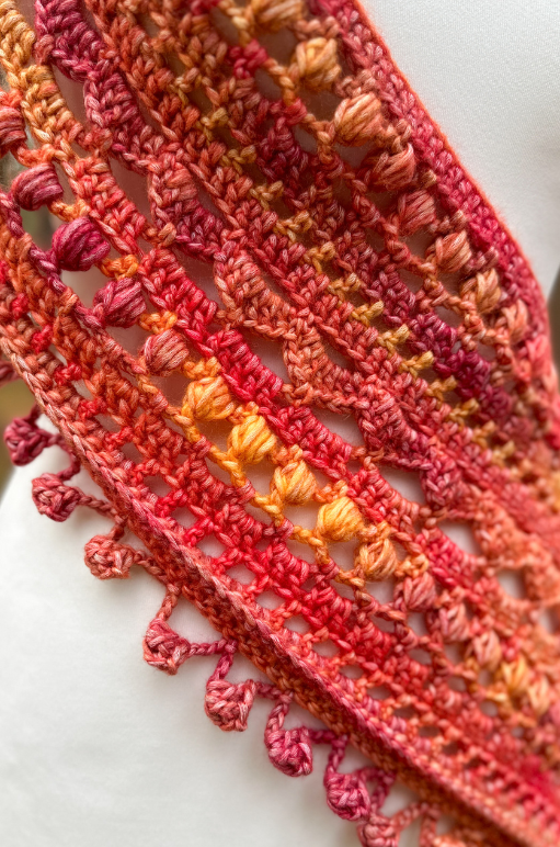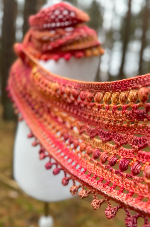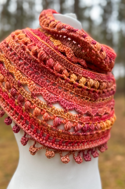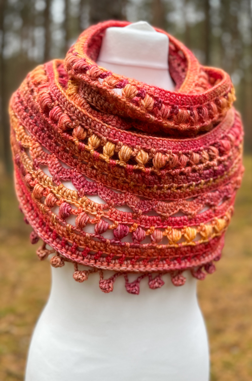 Wrap yourself in cozy elegance with the Autumn Bliss Crochet Scarf. This design combines beautifully textured stitches with a stunning gradient that transitions through rich, warm autumn tones. Featuring a mix of single crochet, double crochet, and the decorative puff stitch, this scarf creates a striking interplay of openwork and texture that stands out in any wardrobe.