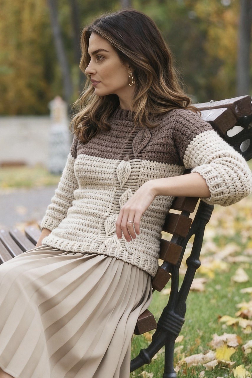 This bottom-up sweater features an easy construction, making it accessible for crocheters of all skill levels. The textured stitches create a beautiful, solid design that adds a touch of sophistication to the piece. Perfect for everyday wear during cold days, the Crochet Leaf Sweater combines style and warmth effortlessly. Whether you're lounging at home or heading out for a brisk walk, this sweater will keep you comfortable and chic. Get ready to embrace the cold with this timeless and versatile garment.