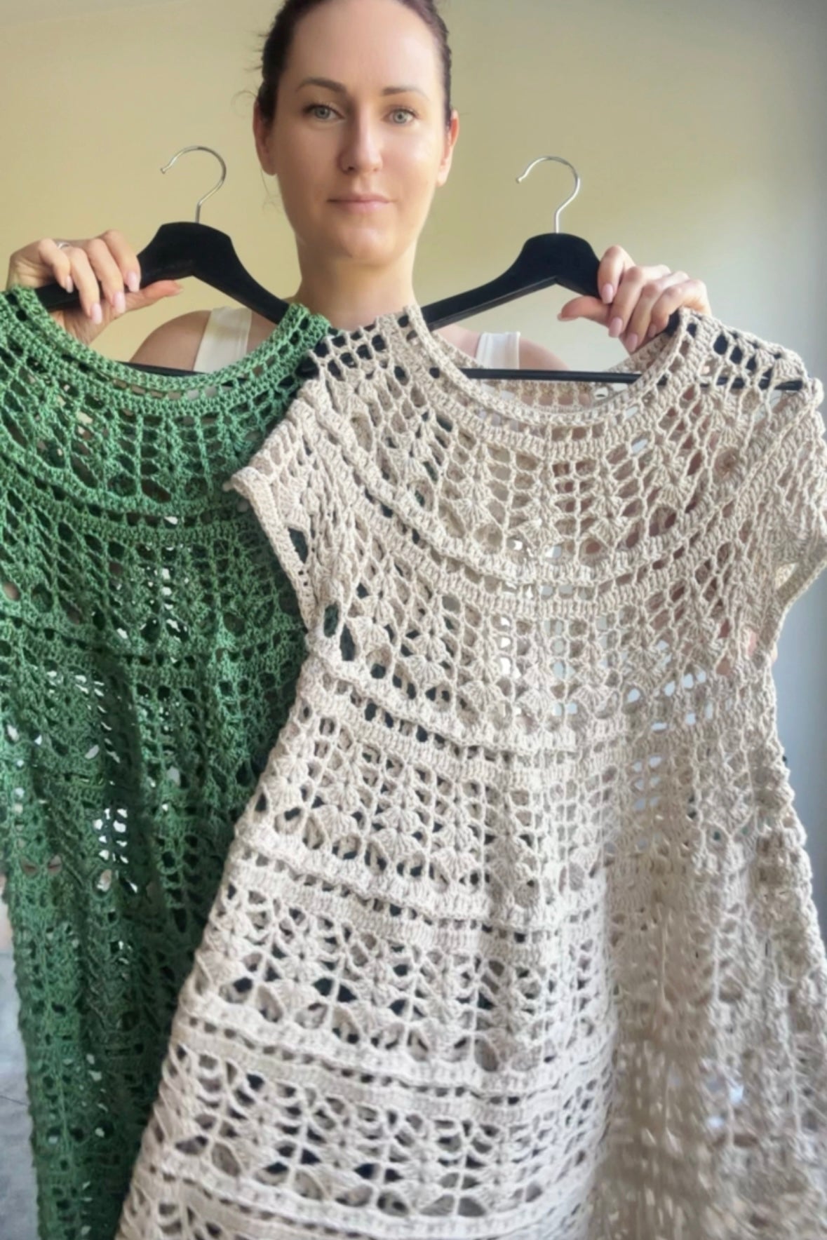 Introducing the Sicilia Dress, a beautifully crafted crochet pattern designed for comfort and style. This top-down crochet dress features a circular yoke and an oversized style that ensures maximum comfort and freedom of movement. Perfect for those who appreciate a relaxed fit with a touch of elegance, the Sicilia Dress is versatile enough for a casual day out or a special evening event.