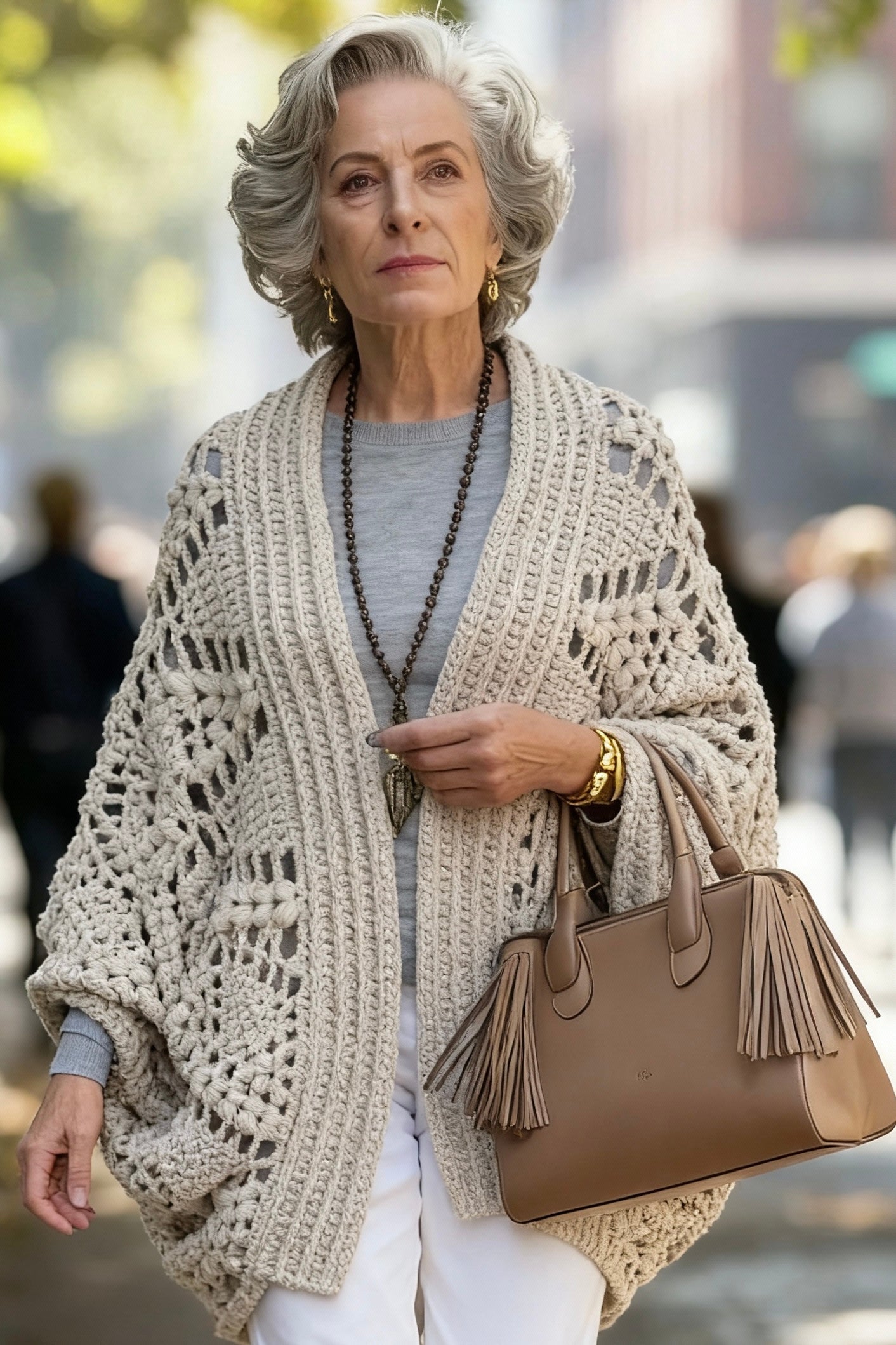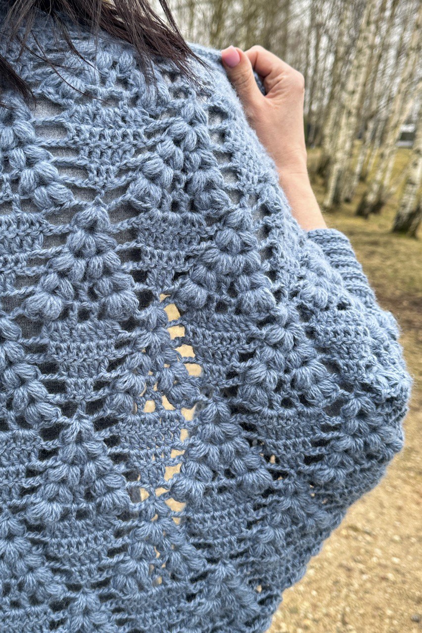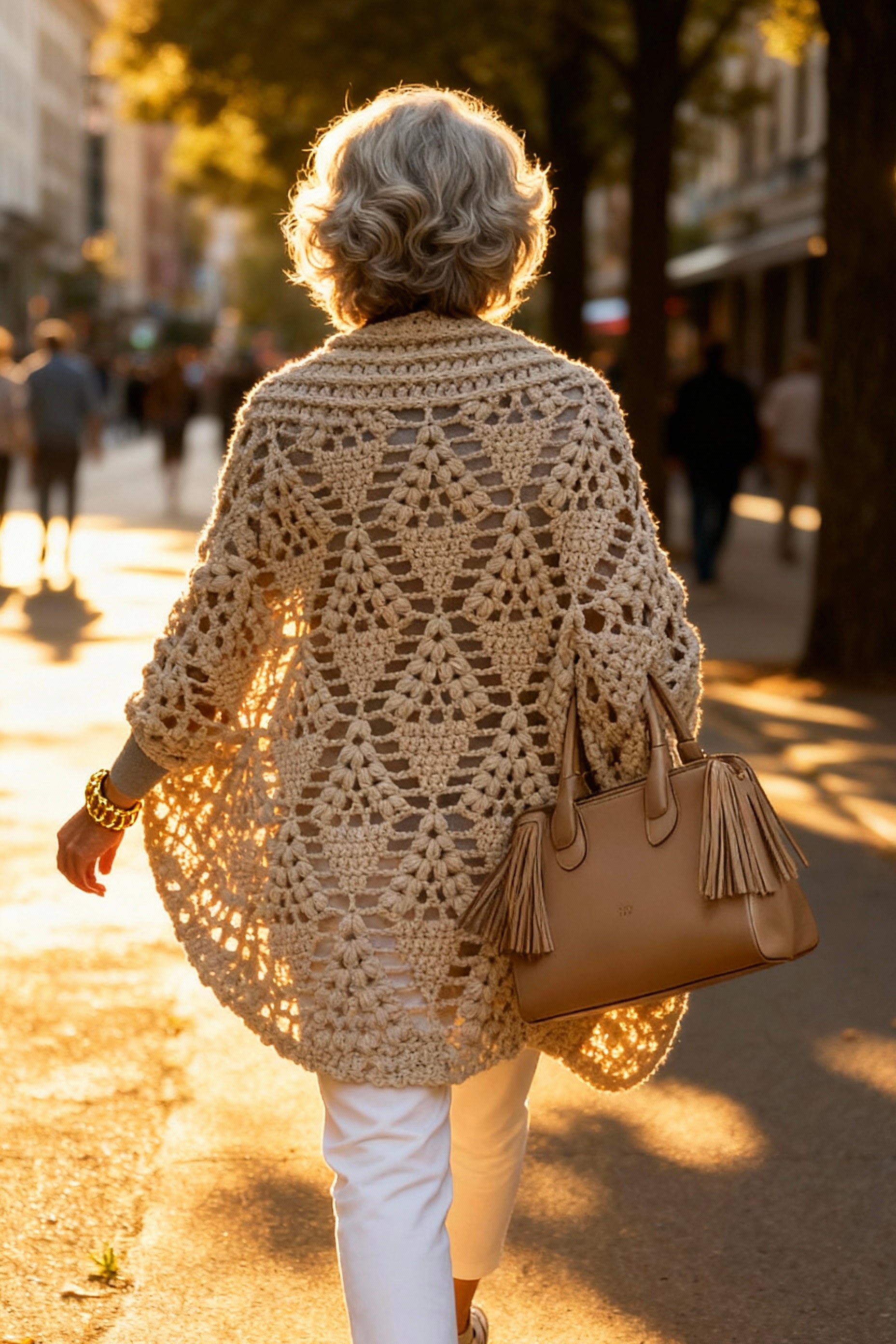 The entire cardigan is created from a simple rectangle, making it an accessible and enjoyable project for crocheters who love straightforward yet impressive designs.