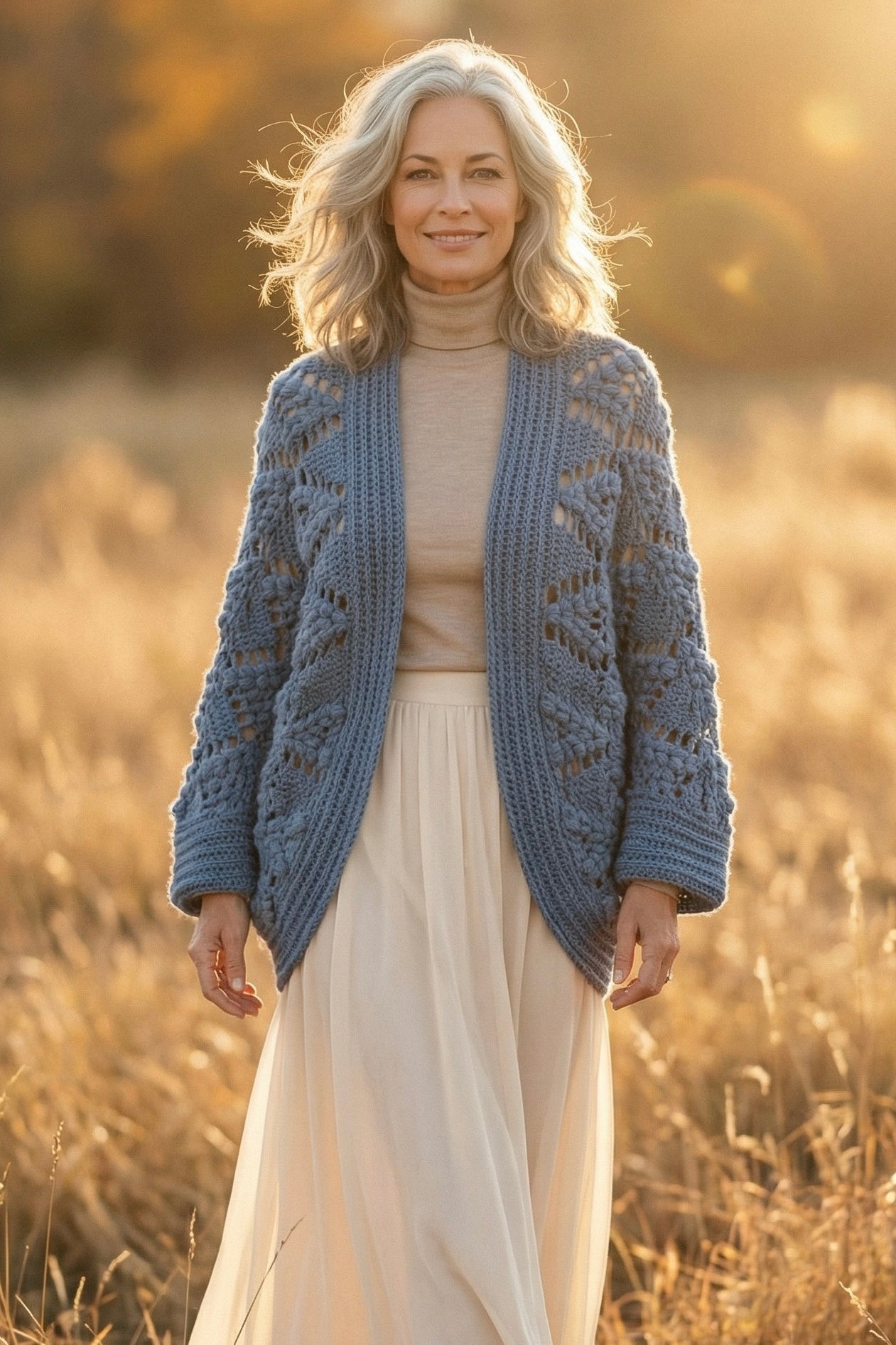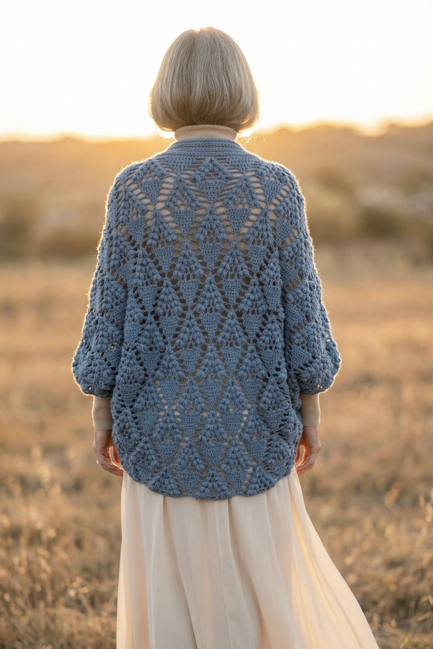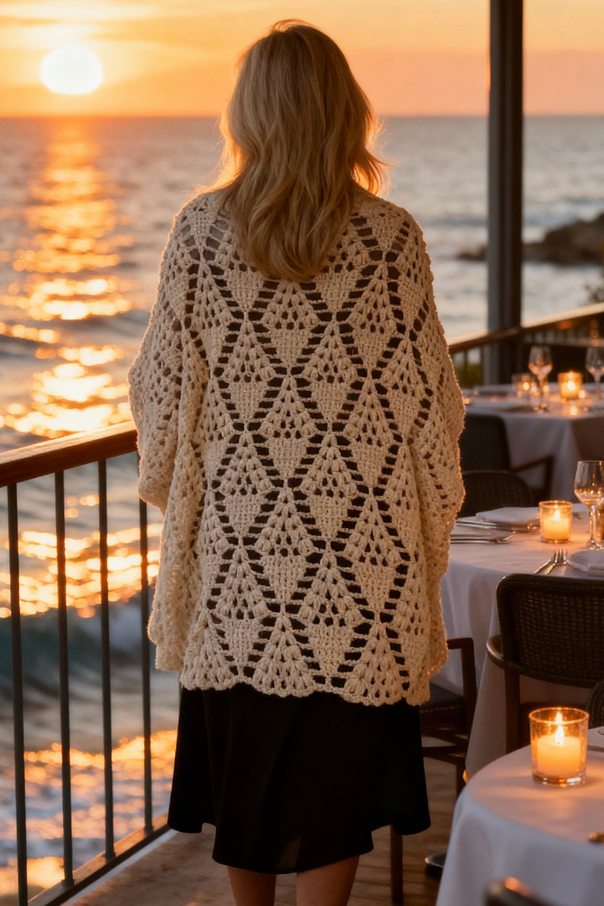 The Diamond Tears Cardigan is a beautiful, cozy layering piece designed with elegance and comfort in mind.