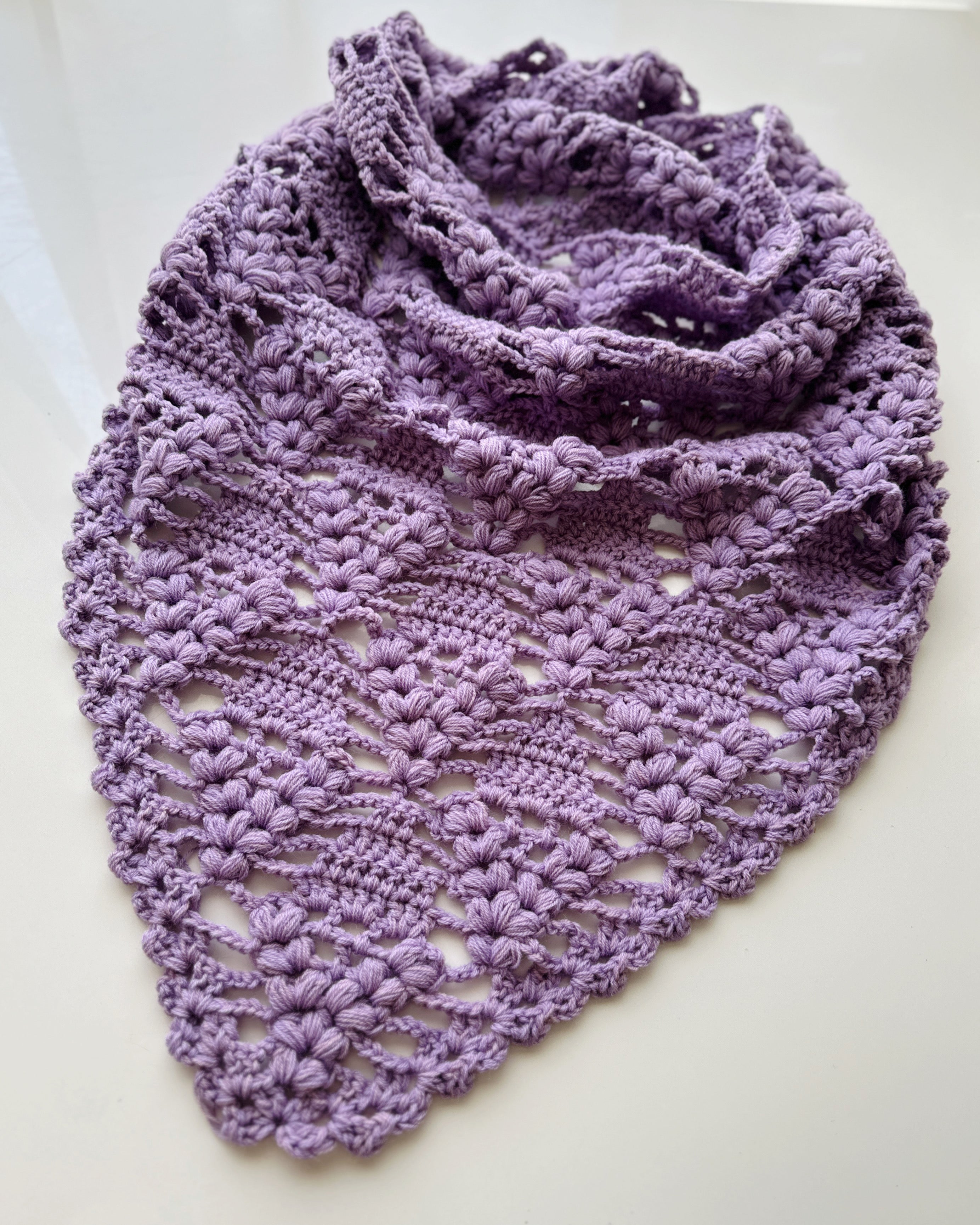 Introducing the Diamond Tears Shawl crochet pattern! This enchanting triangle shawl features a captivating texture that adds a touch of elegance to any outfit. With detailed instructions for each row and accompanying photos, crocheting this piece is a breeze. Utilizing simple stitches like chains, single crochet, double crochet, and puff stitches