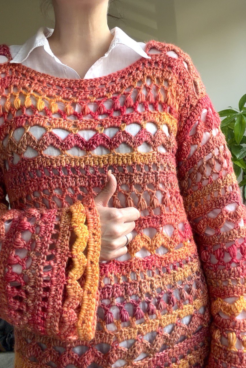 The Isadora Sweater is an elegant and easy-to-make crochet pattern featuring a delicate lace texture. It is worked from the bottom up in flat rows, making it simple to constructюThe lace stitch pattern adds a light, airy feel while still offering warmth and comfort.
